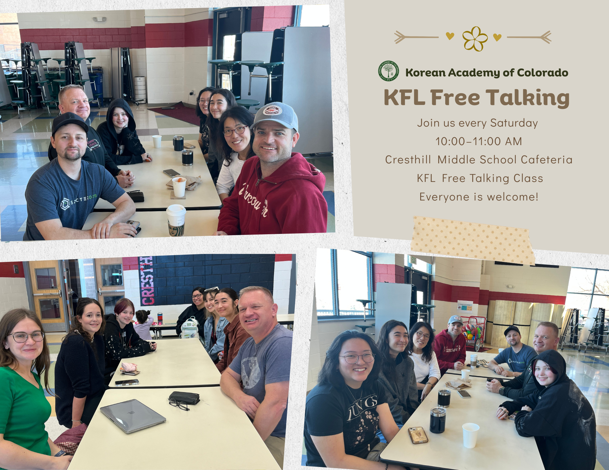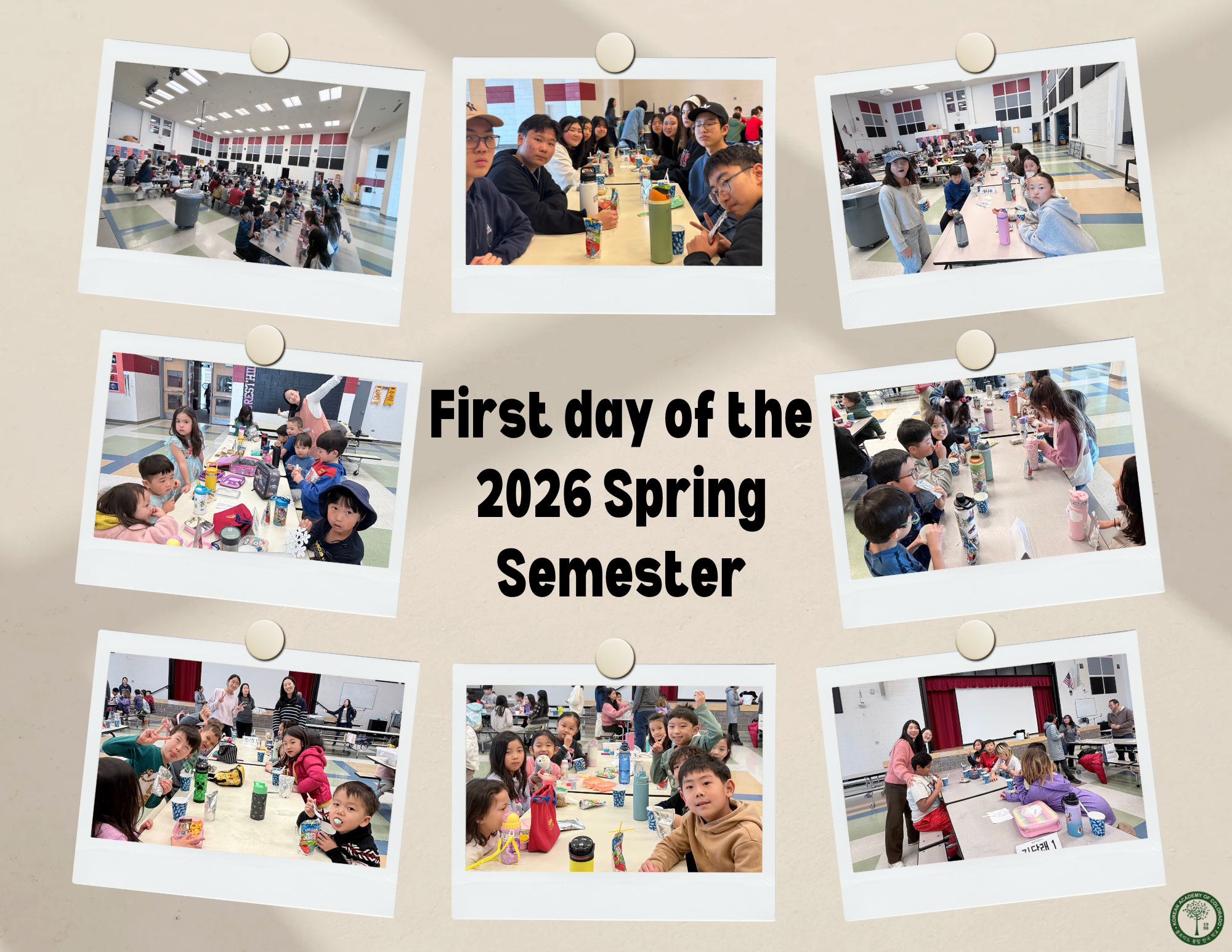 To celebrate the start of the new semester, the school prepared kkultteok (sweet rice cakes) and capri sun. All K-12 students gathered in the cafeteria to enjoy a sweet moment together. A mew semester begins with smiles!